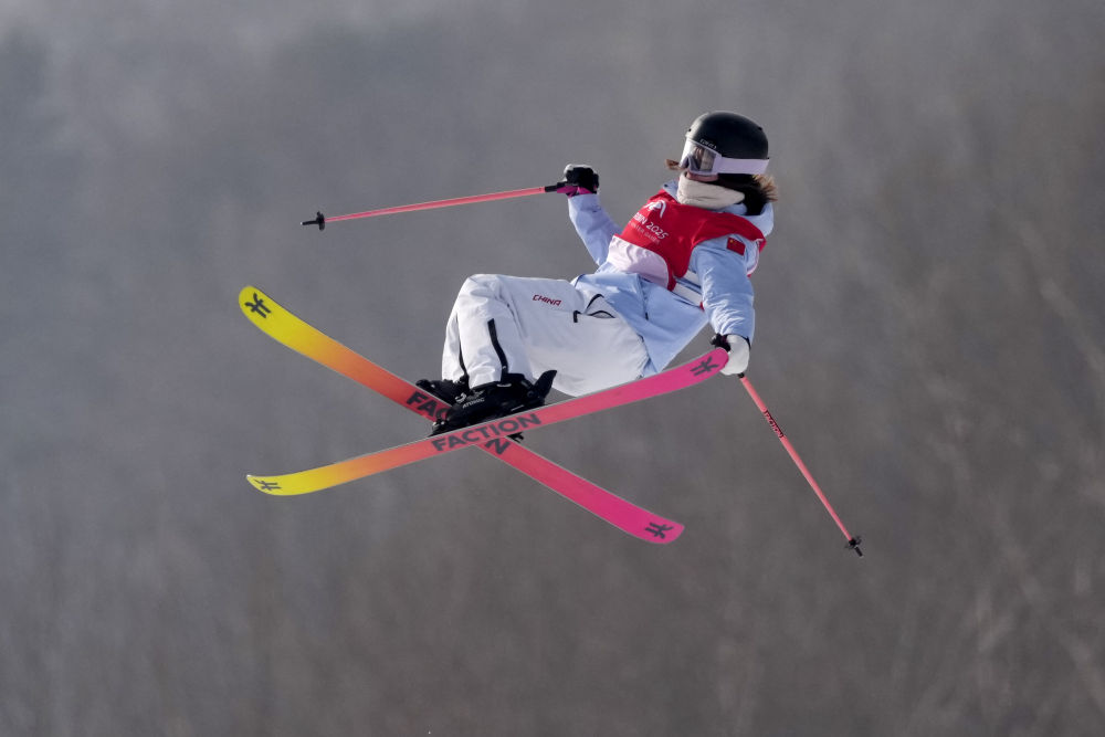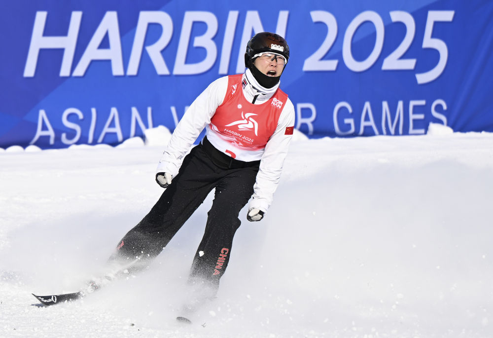 ↑2月12日,中国选手杨如意在第九届亚冬会开脱式滑雪女子大跳台决赛中。最终,她获取季军。新华社记者 王松 摄