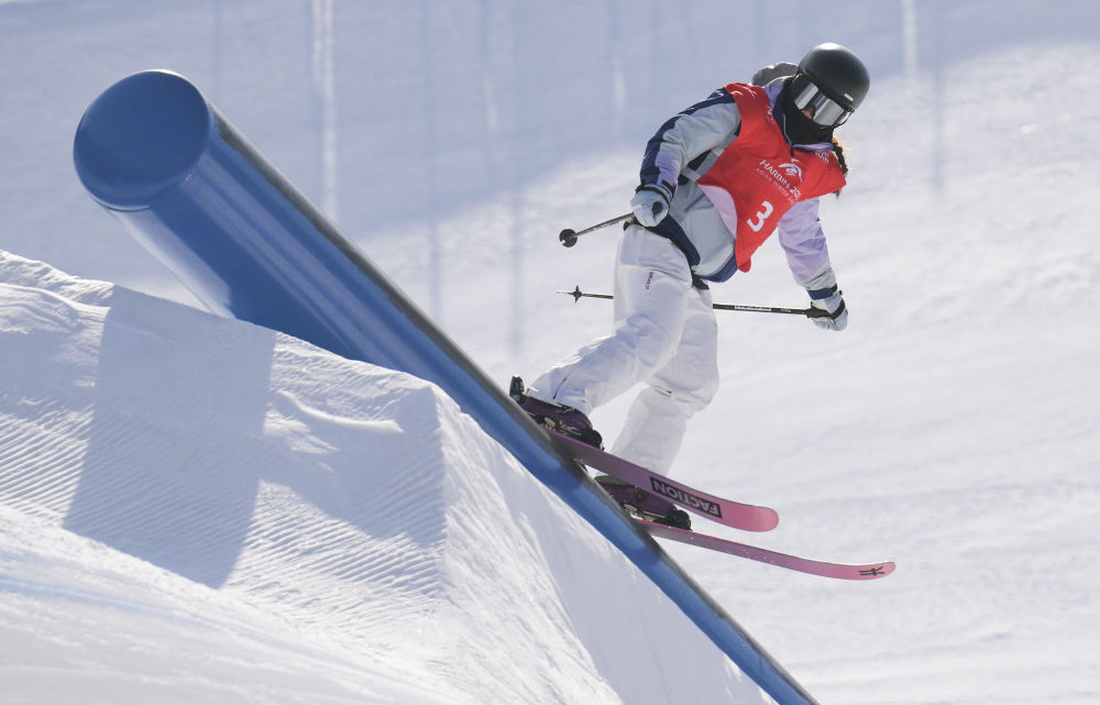 ↑2月11日,中国选手韩林杉在第九届亚冬会开脱式滑雪女子坡面逼迫手段决赛中。最终,她获取季军。新华社记者 牟宇 摄