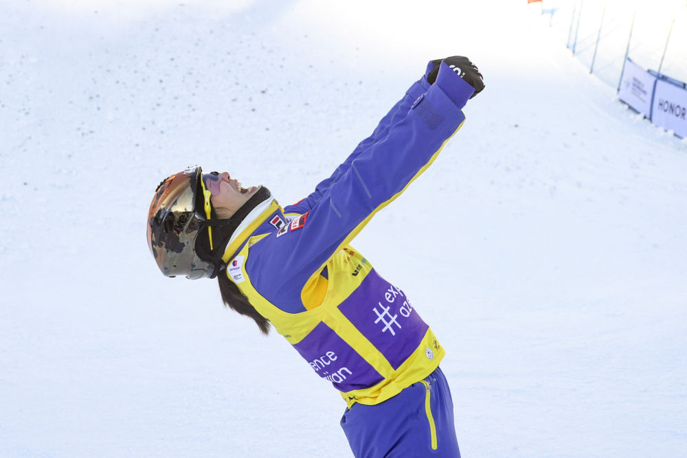 ↑2月9日,中国选手徐梦桃在第九届亚冬会开脱式滑雪女子个东谈主空中手段决赛中庆祝完成动作。最终,徐梦桃获取办事生活第一个亚冬会金牌。新华社记者 夏一方 摄