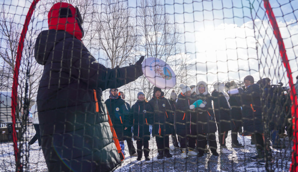 ↑12月3日,吉林市第一实践小学学生在吉林市纳好意思山谷度假区体验雪地飞盘。新华社记者 颜麟蕴 摄