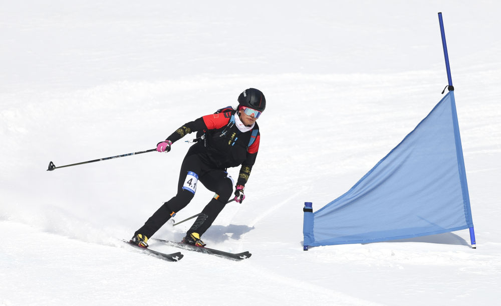 ↑2月12日,中国选手索朗曲珍在第九届亚冬会滑雪登山搀和奋勉初赛中。新华社记者 杨青 摄