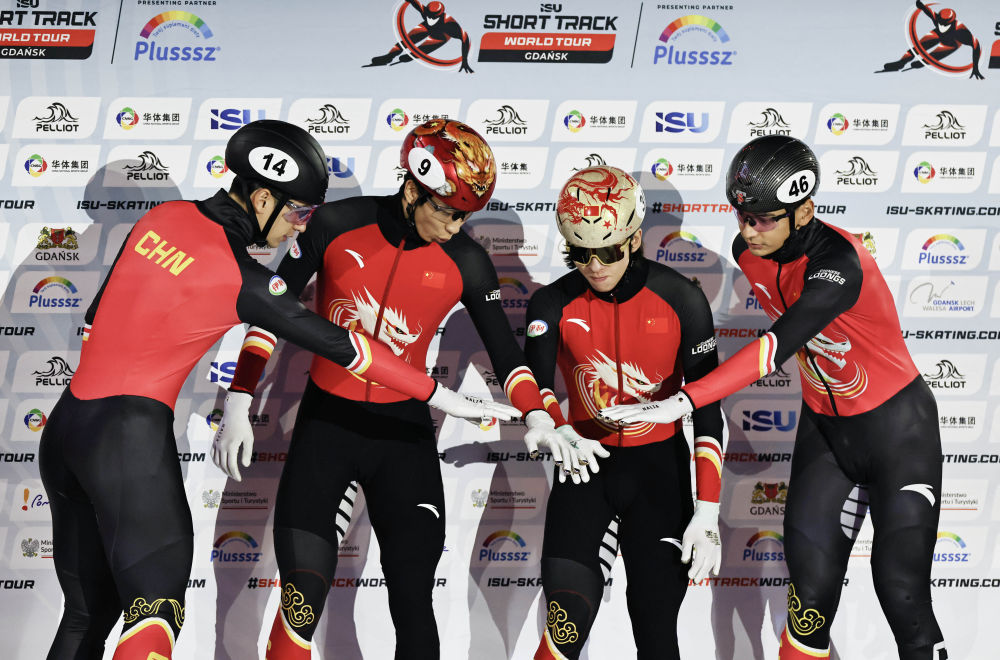 ↑11月23日,中国队选手刘少昂、孙龙、林孝埈、刘少林(从左到右)在在波兰格但斯克举行的2025-2026赛季外洋滑联短谈速滑世界巡回赛暨米兰冬奥会阅历赛第三站男人5000米A组决赛前相互饱读舞。最终,中国队获取亚军。新华社记者 高静 摄