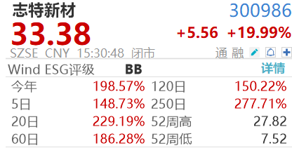 志特新材是2026年A股首只翻倍股,亦然年内涨幅最大的股票,驱散1月12日已6连20cm涨停,近20个往异日涨近230%。